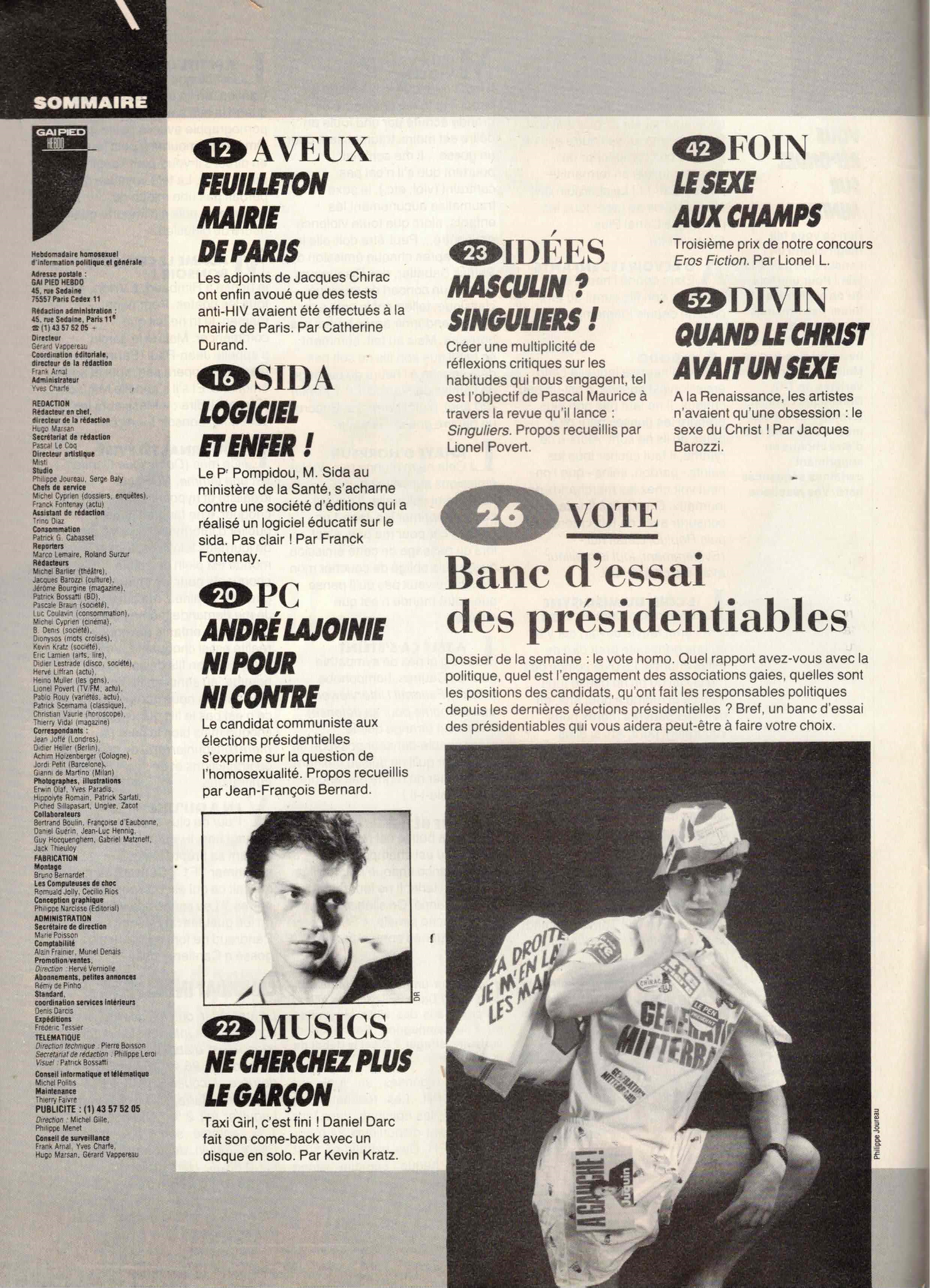 GAI PIED HEBDO FRANCE / 1988 / Avril / Le vote homo